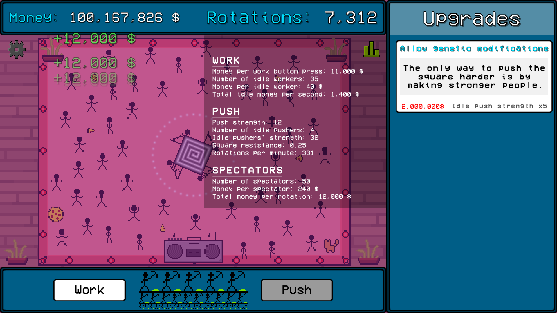 yo your game was very creative and i loved it but id recomend changing the square a little because once you get four workers it looks like a swastika....